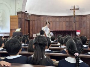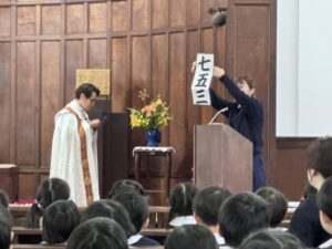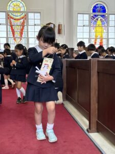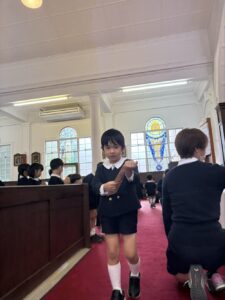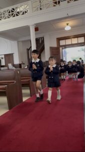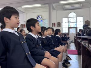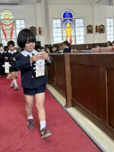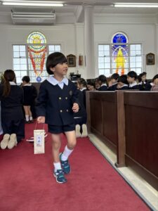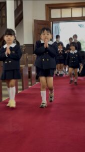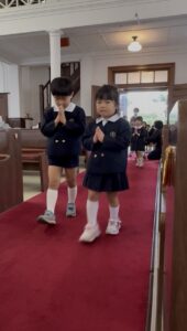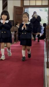 七五三のお祝いのため、幼稚園の前にある、高円寺教会へみなさまで行きました。