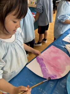 どんな柄が浮き出てくるのか、ワクワクしながらはじき絵を楽しんでいました。