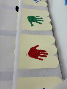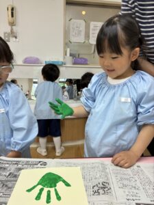 年少さんは、かわいらしい手形スタンプのうろこです。