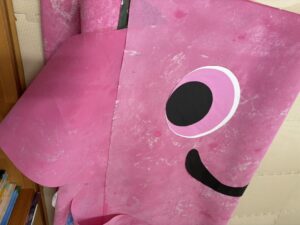幼稚園では、園庭に飾るこいのぼりを、現在子どもたちと製作中!
