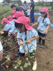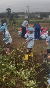 年中・年長さんは、蔓や葉っぱを取るところから始めました。