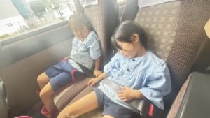 バスの中では、朝の会をしたり、バスガイドさんとゲームをしたりと