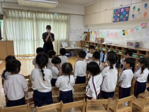 年長さんの素敵な挨拶、お祈りや歌などを近くでみていた年少さんは、