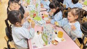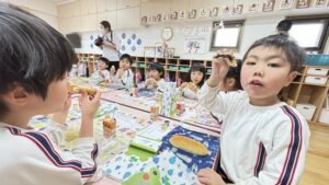 幼稚園のお誕生日をお祝いしながら、楽しい時間を過ごした子どもたちでした。